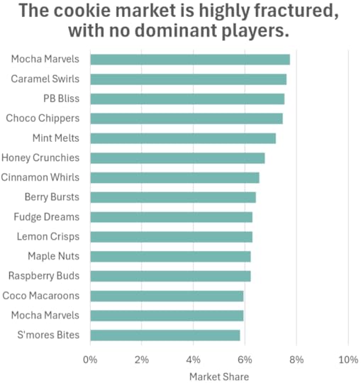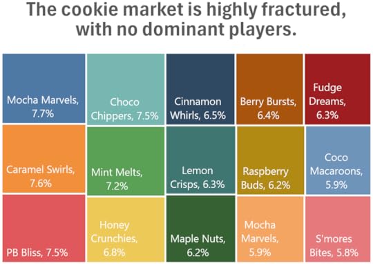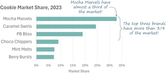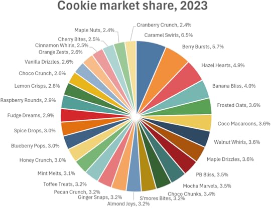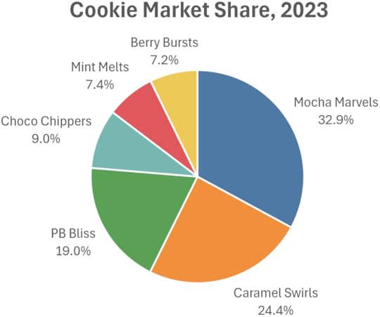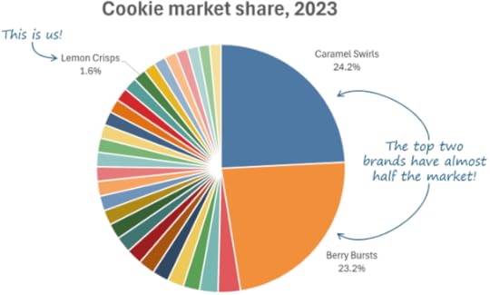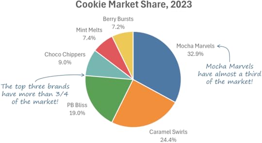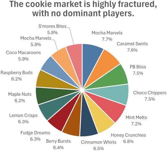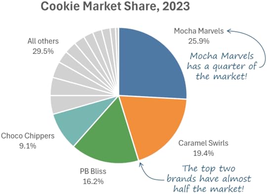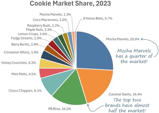 So, a pie chart with more than two or three slices can be the best option in certain situations, I think. A bar chart would be a better choice in the previous scenario if the insight to be communicated were something like, “Mocha Marvels have the largest market share,” but that’s not the kind of insight that we needed to communicate in that scenario.