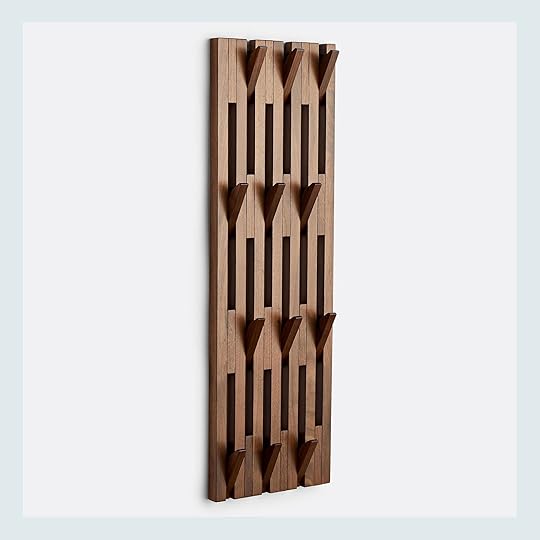 Tall Walnut Hook Rack: In a world of horizontal racks, this vertical solution is dynamic and eye-catching. What a great way to make use of a cramped space! (The high-quality construction doesn’t hurt, either.)
