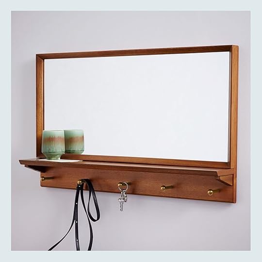 Mid-Century Entryway Wall Mirror: Throw on your coat and sunglasses. Grab your keys and purse. Give yourself a once-over in the mirror. (All this can be yours with only 3′ of wall space!)