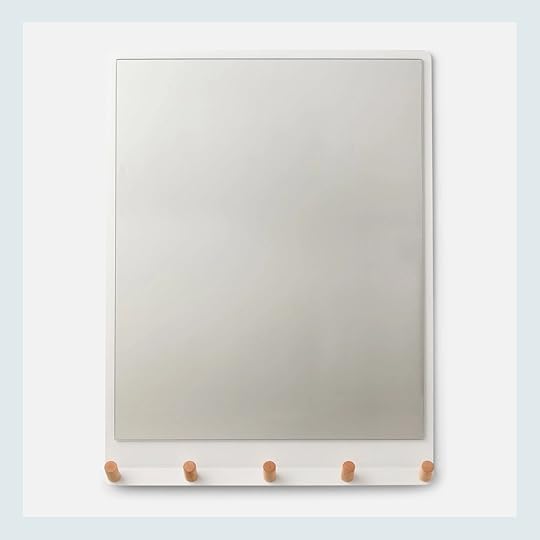 Hook Mirror: How sweet are these streamlined maple pegs against this crisp white mirror?