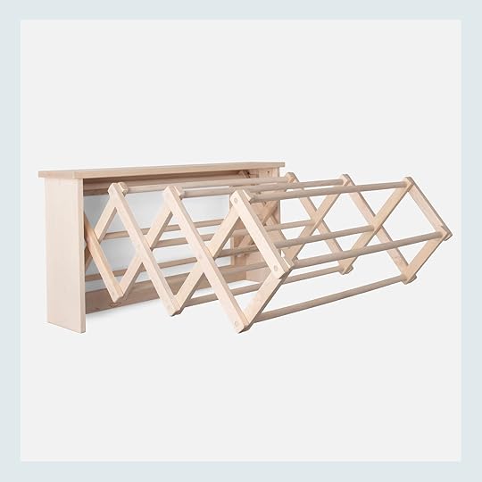 Maple Wall-Mounted Clothes Drying Rack: On a scale of 9 to 10, how brilliant is this clothes drying solution? The collapsible design provides 15″ (!!!) of drying space that can be stowed away when not in use.