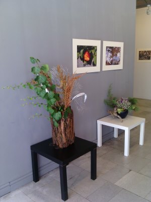 Накрая /или в началото?!/, до самата врата на изложбената зала, потънали в сянката на носеща колона, една икебана посреща и изпраща посетителя. Златен варак покрива зелените листенца и изсъхналите клони – като спомен от детство…