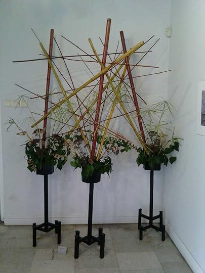 Очите опипват настръхналото, накъсано пространство в скритото ъгълче на галерията, трептят мечовете на икебана – сухи – папрати, кухи стволове… мрежа, в която се хваща дъхът ми… сребърни люс-пи под стъпките…