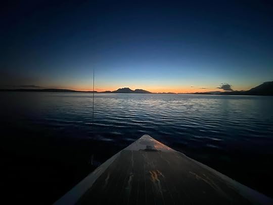„Вече сме в Орнес (66 градуса и 52 минути северна ширина – северно от Полярния кръг). Както бяхме планирали с Кам от самото начало, гребем на север по крайбрежието на Норвегия, докато синът ми Макс свърши летния си стаж в Ню Йорк, за да продължим с него нататък към Свалбард. Днес Макс лети насам, а Кам се връща към Калифорния. С Кам имахме невероятното щастие да се насладим на борда на НЕВЕРЕСТ на неземно красиви пейзажи и незабравими моменти, които ще ценим завинаги.“