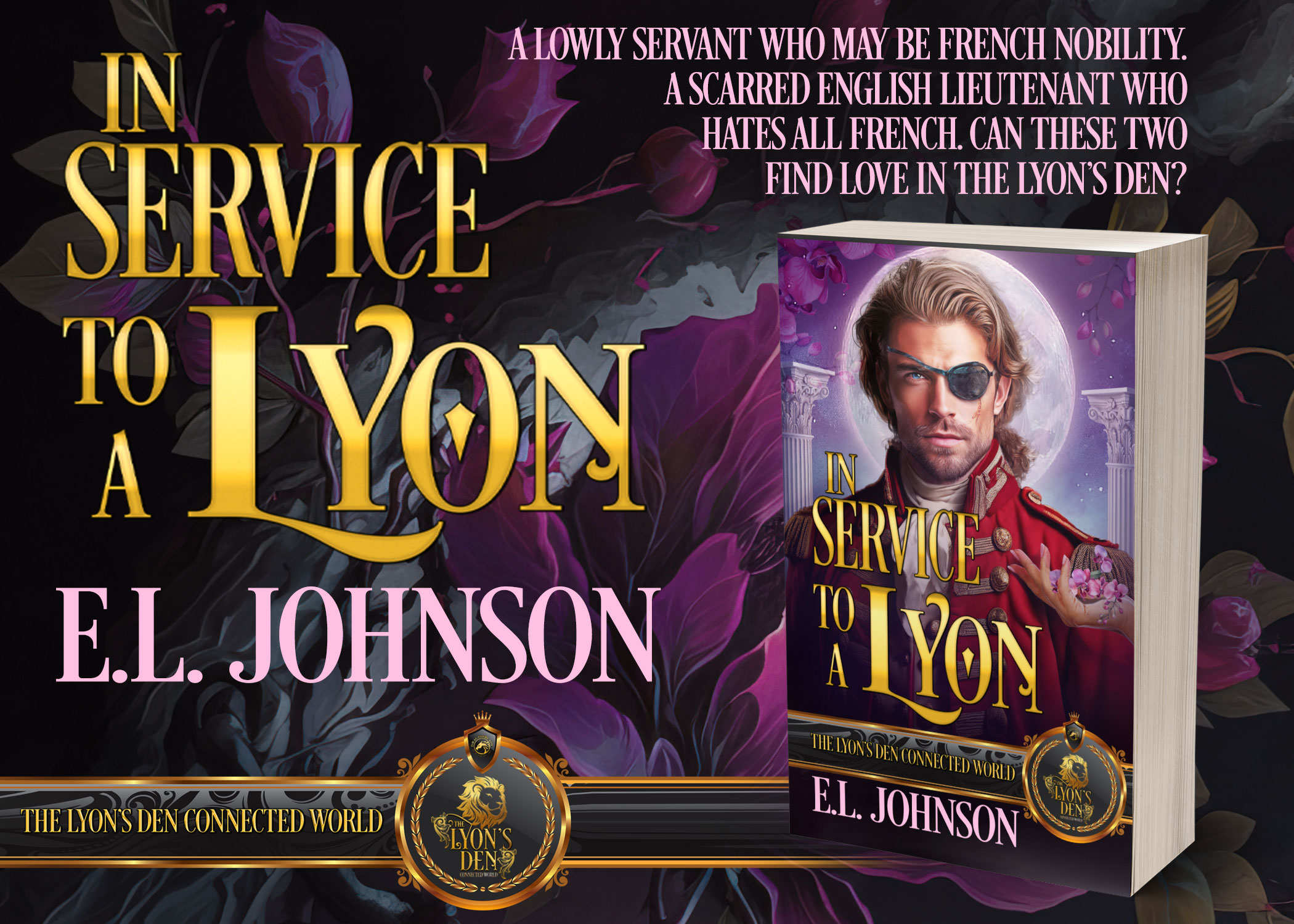 Thank you for joining me for another First Kiss Friday. My guest today is fellow Dragonblade Publishing author E.L. Johnson who has an excerpt from her Lyon’s Den Connected World story, In Service to a Lyon. We hope you enjoy this first kiss scene! Happy reading, my lovelies.