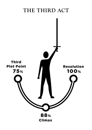 The Third Plot Point – 75%The Climax – 88%The Climactic Moment — 98%The Resolution – 100%