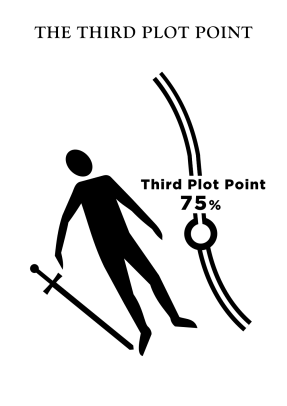 The Third Plot Point represents a Low Moment for your characters. The thing they want most in the world will be almost within grasp—only to be dashed away—causing them to question their investment in the conflict. The subsequent Climax will be the period in which the characters rise from the ashes, ready to do battle from a place of inner wholeness. The Third Plot Point is the place from which they must rise.