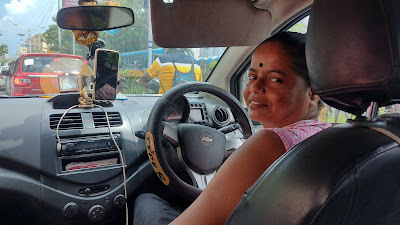 গাড়ি চালাতে আমার খুব ভালো লাগে স্যার। সকাল আটটা থেকে রাত এগারোটা পর্যন্ত চালাই। রবিবার ছুটি থাকে। সেদিন বাড়ি থাকি। নানা কাজ থাকে। কোভিডের সময় আজাদ ফাউন্ডেশান ওই যে ফিল্ম স্টার আমির খানের ছেলের নামে ওদের একটা সংস্থা আছে না ওখানেই গাড়ি চালানো শিখি। খুব যত্ন করে শিখিয়েছিলেন স্যাররা। শুধু তাই না গুগুল ম্যাপ দেখে রাস্তা কিভাবে চিনবো। কিভাবে যাবো। সব কিছু। অনেক ড্রাইভারের চাকরী এসেছিল স্যার। একটাও করিনি। চাকরী করা মানে আটকে যাওয়া। আর এই যে গাড়ি চালাচ্ছি। নিজের না তবুও তো কত মানুষের সঙ্গে রোজ দেখা হয়। কত মানুষ কত গল্প করেন। ভালো লাগে। প্রথমে অনেক কিছু ভুল হতো। পার্ক সার্কাস সেভেন্ট পয়েন্টে গিয়ে মনে হতো কোন দিকে যাবো। কোন দিকে বেরোবো। পার্ক স্ট্রিটে গেলে ওয়ান ওয়ে। ভুল হয়ে যেত। কিন্তু সার্জেন্ট স্যাররা চিনিয়ে দিতেন। একদিনের জন্যও কেস দেননি। একদিন হয়েছে কি আমার গাড়ির টায়ার পাঞ্চার হয়ে গেছে এই বাইপাসের ওপরেই। চাকাটা লাগাচ্ছি। দেখি একজন বড় পুলিশ স্যারের গাড়ি এসে দাঁড়ালো। আমি তো ভয়েই মরি। কী হলো। এবার যদি কেস দেয়। উনি গাড়ি থেকে নেমে ওনার ড্রাইভারকে দিয়ে গাড়ির চাকা ঠিক করে দিতে বললেন। আমি বারণ করেছিলাম। কিন্তু উনি বললেন দেখতে যখন পেয়েছি এটা করতে দিন। পরের বারেরটা নিজে লাগাবেন। বাড়িতে দুই ছেলে আছে স্যার। বড় জনের বিয়ে হয়ে গেছে। নাতি আছে। ছোট ছেলেটা এখনও বিয়ে করেনি। মেয়েটারও বিয়ে হয়েছে। জামাই মেয়ে সবাই খুব কাছাকাছি থাকে। নাতি নাতনি বউমা, জামাই সবাইকে নিয়ে আমার সংসার স্যার। সাত বছর আগে স্বামী মারা যান। কিন্তু তারপর থেকে বসে থাকিনি। লড়ে গেছি স্যার। এক দিনের জন্যও থামিনি। আমরা সবাই মিলে কাজ করি স্যার। কেউ বসা না।