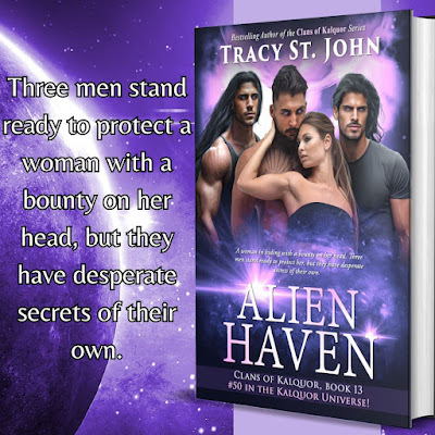 Using the alias Jennifer Seng, Charity Nath hides on Haven, a planet settled by Earthers and Kalquorians. She’s less than thrilled to be on the agricultural outpost where the height of culture is a play titled Cow Patties in Paradise. With a bounty on her head and ruthless enemies determined to cash in, she has little choice but to work on Clan Amgar’s farm until the danger is past. At least the view is nice, thanks to three young, handsome Kalquorians…but they have their own secrets they’re unwilling to share.