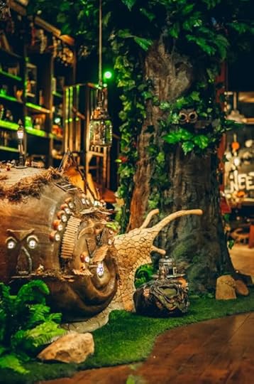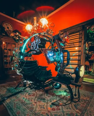 দু তলা জুড়ে মিউজিয়াম, জিনিসপত্রে ঠাসা। স্টিমপাঙ্ক শুধু নয়, ফ্যান্টাসির হরেক উপাদান আছে। প্রকাণ্ড এক বুকসেল্ফ আছে, সেখান থেকে নিয়ম মেনে বিশেষ জায়গা থেকে দুটো বই সরিয়ে নিলে মাঝখান থেকে লাইব্রেরি দু ফাঁক হয়ে একটা গোপন ঘরের সন্ধান মেলে, সেখানে রাখা আছে একটা টাইমমেশিন। আজ্ঞে, চলেও। স্টিমপাঙ্ক রোমিও গেম আছে, হাতের উত্তাপ আর গতি দিয়ে নিয়ন্ত্রণ করা গানের কল আছে, ইন্সটাগ্রাম বা রিলের অ্যাডিকশন ছাড়ানোর মেশিন আছে। বিস্তর ভূতপ্রেত পরী দানো ভ্যাম্পায়ার ইত্যাদিও আছে। মুখে কথা সরে না। চোখ বিস্ময়ে বড় বড় হয়েই থাকে। আঙুল কামড়ে বার বার ভাবি, কতটা প্যাশন থাকলে এমন একটা জায়গা তৈরি করা সম্ভব?