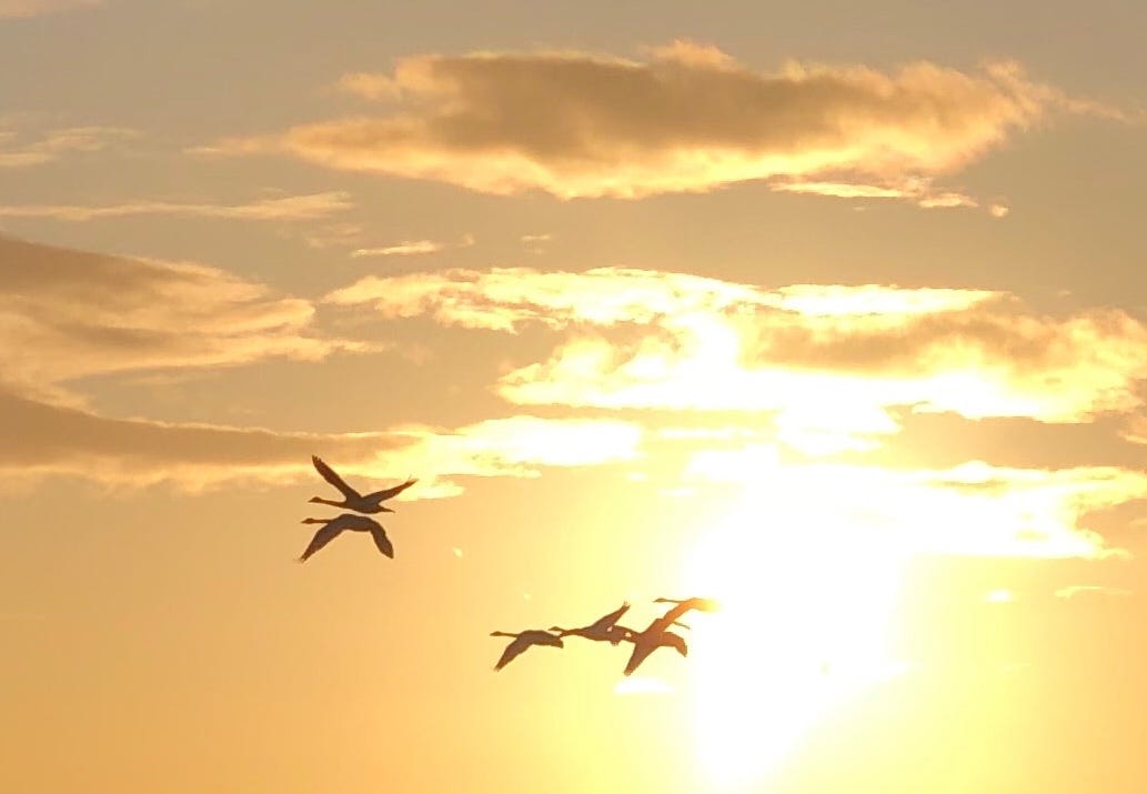 How, above the wind, we’ll hear music . . . from trumpets and stones, angels and swans.