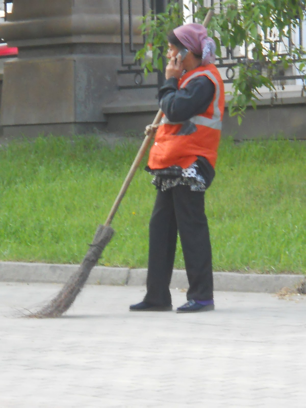 If writers have one character flaw (and most people agree that this is understating the case), it is that we have a weakness for the picturesque. Which, at its worst, can make us unintentionally condescending -- "Look at the quaint Wisconsonite, with his wheel of cheese!" So I was careful not to snap pix of the street-sweepers in Ekaterinburg, even though some of them had a distinctly raffish air about them.