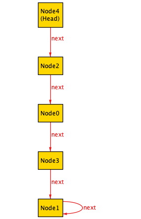 Tortoise and hare tokensThe tortoise and the hare are pointers to the nodes. However, I like to think of them like tokens moving along a game board, so I called them tokens. Here’s how I modeled them: