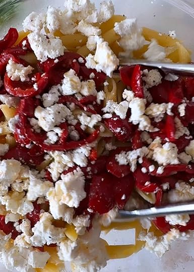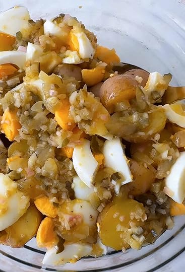 Finally a cherry pepper potato salad that turned red and was filled with oil. No thanks.