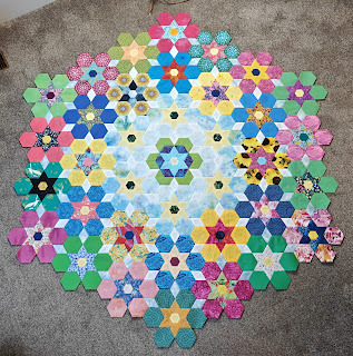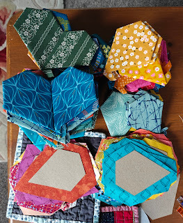 The other thrill is incomplete, but FINALLY I returned to working on Alexandria, an EPP project started two years ago, then set aside (kind of like The Enran Chronicles, ahem, so just be patient with yourself there Miss Writer!) due to other shinies muscling into the arena. I've spent the last six weeks hand-stitching my heart to rapturous crafty joy, and am eager to continue the excitement. Something about hand-sewing brings me utter pleasure, so we'll see how long the sewing machine remains under cover.