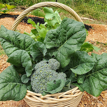 Continuing to use broccoli as our example, remember that we figured Jane Doe wants to eat 24 lbs. of broccoli in a year. Looking at the chart, we see that the average broccoli plant produces about 1 lb. of broccoli head. (The leaves and stalks are edible, too, but we'll just consider those a bonus crop.) Therefore, Jane Doe will need to put about 24 broccoli plants in her garden. Since we know we're using an average yield number, and we also know disease and pests happen, I recommend that number as a minimum.
