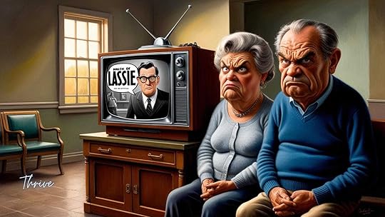 Yeah, the town thought Edgar was a drag queen until that one day he and his sister finally showed up in the same room. Why “Lassie” is on a black and white TV news show where the commentator’s face is in color, but nothing else on the screen is in color is beyond me. Thank you, AI!