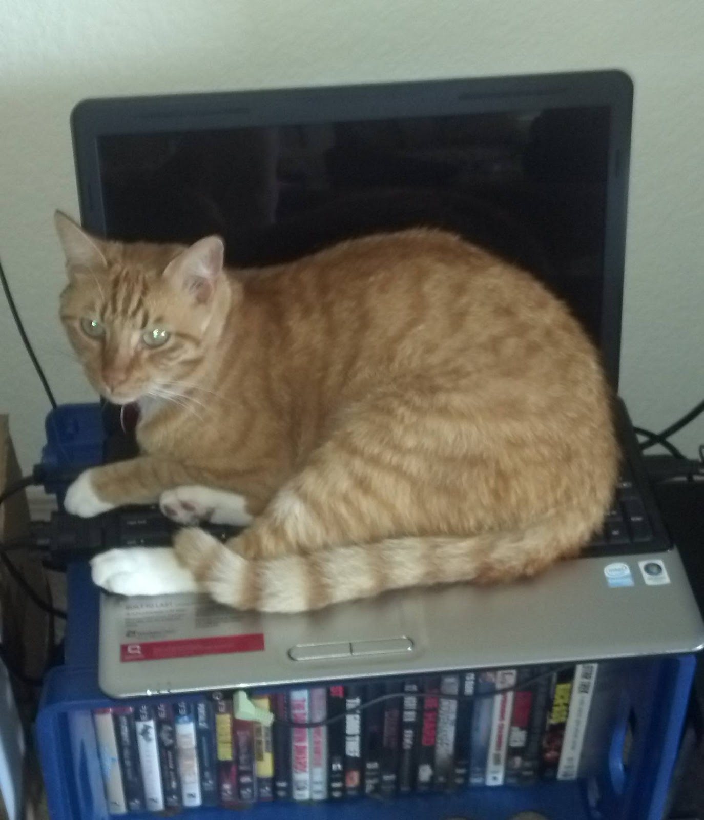 And it's a kitteh on a laptop! (Damn demon devil cat always biting my feet and attacking my head! Seriously. He attacks my head. Like stalk-pounce-attacks. Not fun).