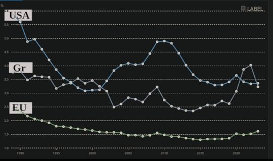 Αμυντικές δαπάνες Ελλάδας, ΗΠΑ και Ε.Ε. ως ποσοστό του ΑΕΠ. Πηγή: Παγκόσμια ΤράπεζαΑπό όλη αυτή την ιστορία το μόνο που θα συμβεί θα είναι η αύξηση των προϋπολογισμών άμυνας της Ευρώπης. Έτσι κι αλλιώς οι προϋπολογισμοί άμυνας αυξάνονται τα τελευταία χρόνια. Όσο για μας, κρίση ξεκρίση, λιτότητα ή όχι, η Ευρώπη έχει πολύ δρόμο ακόμα για να μας φτάσει στις στρατιωτικές δαπάνες…