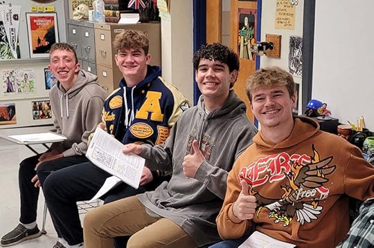 Some of my students enjoying a Reader's Theater script-story about the Trojan War.