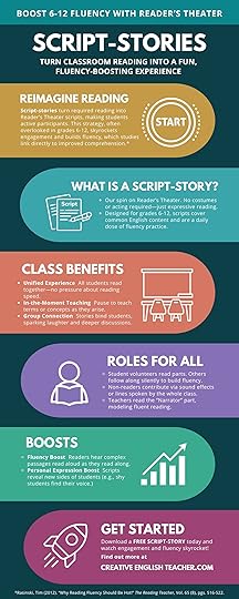 What is a Script-Story? Our spin on Reader’s Theater. No costumes or acting required—just expressive reading. Designed for grades 6-12, scripts cover common English content and are a daily dose of fluency practice.Why not call it “Reader’s Theater”? The term theater can make students think they are putting on a traditional play with costumes or physical acting, making some students hesitant.Benefits of a Script-Story