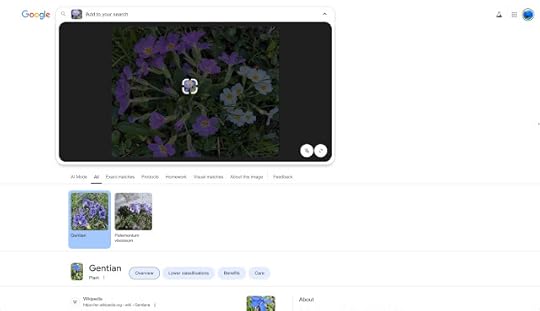 As you can see, it calls it a gentian. Well... notice how Lens has selected an individual flower in the middle? That does kind of look like a gentian, but I know gentians, and this isn't a gentian.