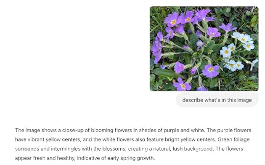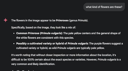 Not quite what I was looking for.... so I changed my prompt to: [what kind of flowers are these] NOW I got a much better answer. Here's Gemini's answer: