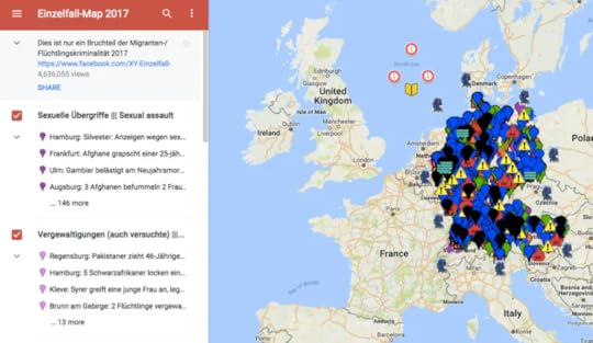This map claimed to show “immigrant crime” but included crimes where there was no evidence anyone involved was an immigrant. Source: Bureau of Investigative JournalismAnother area to focus on is classification: numbers can be exaggerated by making definitions so broad that they aren’t really measuring what they claim to be. In Germany many years ago, for example, a map claiming to show ‘refugee crime’ was being shared online, but its definition covered any crimes with descriptions of people as “dark-skinned” or “southern”, and in at least one case the person was the victim.