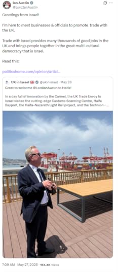 The United Nations has written to the UK on the subject of its treatment both of pro-Palestinian protestors and journalists and the abuse of anti-terrorism legislation. It is almost certain that some of the same cases the UN cites are those the Israeli Embassy has been involved in. The contrast between the UK’s treatment of the Israelis and of the United Nations could scarcely be different. The Israelis are invited in, while the Starmer regime has repudiated the United Nations.