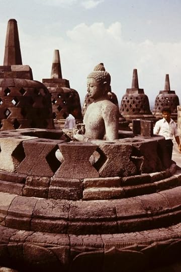 En dan nu, meer dan vier decennia later, toch eindelijk de voltooiing van mijn voltooide ‘Onvoltooide’ en wel in dit Intermezzo van oude plaatjes, waarvan ik de vorige keer in vogelvlucht Turkije, Iran, Pakistan, Nepal en India behandelde. Maleisië en Singapore komen er in dit vervolg nog steeds een beetje bekaaid af, maar met het accent op Indonesië hoop ik veel goed te maken. En misschien neem ik die passage, gedeeltelijk of in zijn geheel, op in mijn nieuwe boek dat overigens nog lang niet voltooid is, maar dat, als alles goed loopt, te zijner tijd in één klap volledig voltooid zal worden, om dit pleonasme er maar even achteraan te gooien. Dus geen gedoe zoals bij ‘Kuifje en de zeven kristallen bollen’ met: lees het vervolg in ‘De zonnetempel’.