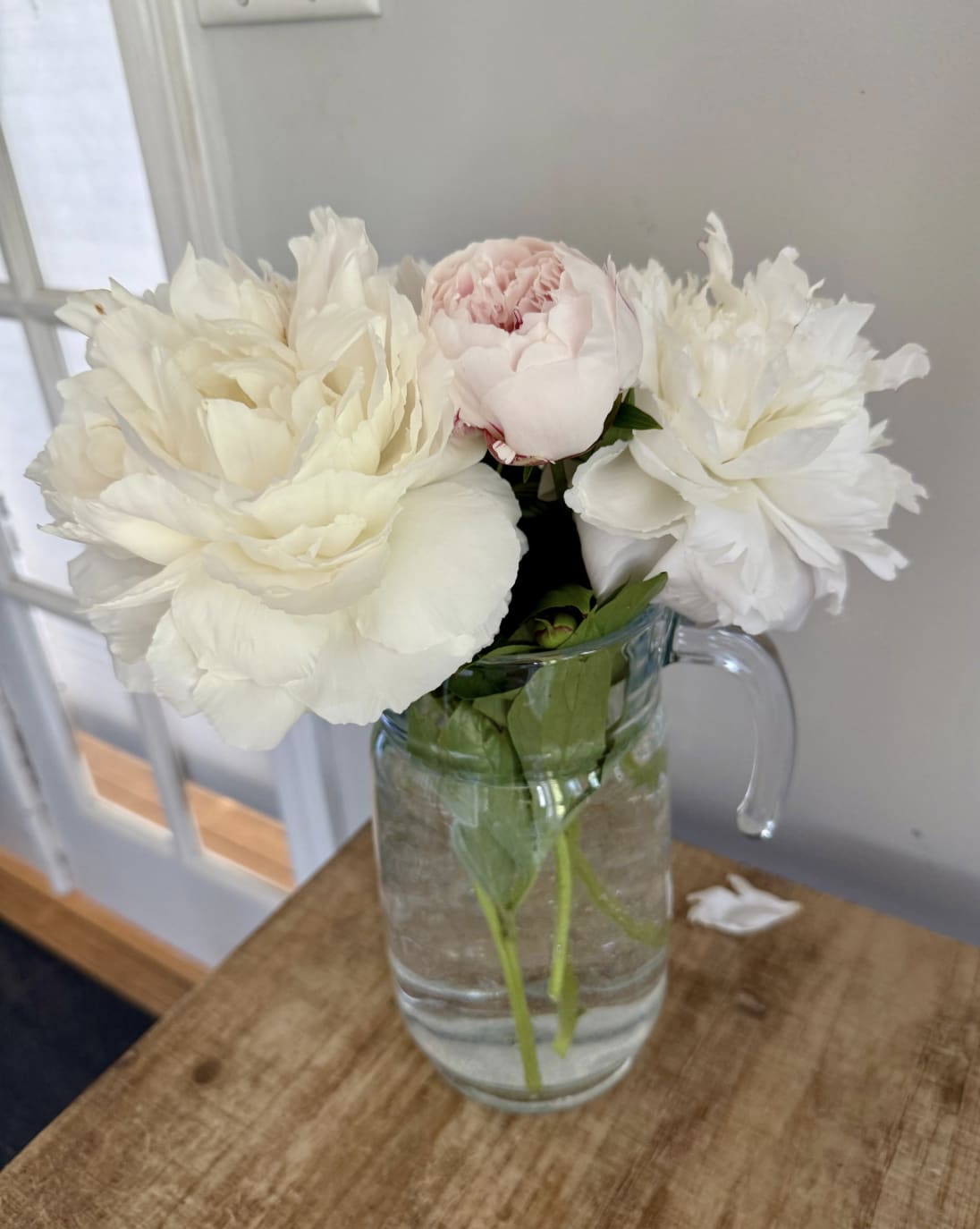 Smelling: My garden peonies. Oh, I love them so. Did you know? If winter is too mild, peonies might not bloom at all, or they will be weak bloomers. Their color will be less vibrant and they will struggle to thrive.