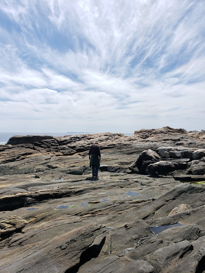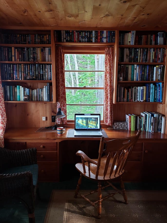 In July 2019 I was lucky enough to spend a week at Rachel’s cabin — the very same cabin where the story I wrote takes place — on Southport Island, Maine. Jim came with me, as did our friends Jerry and Laurie. The four of us arrived during the worst heat wave Maine had seen in years, to a cabin with no a/c, but with all the touches of a woman explorer and scientist who had made the world her laboratory.