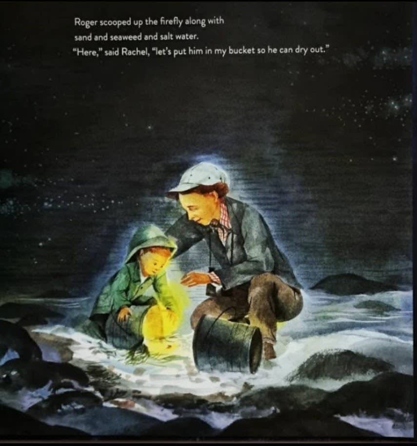 And then there was the story about saving a tiny firefly with her great-nephew (and later, adopted son) Roger after a nighttime summer storm in Maine, where Rachel had a cabin to retreat to once a year or so. The firefly was flashing in a tiny puddle on the shore, desperate (so it seemed) to escape and to reach its kind out on the ocean, as the lights in the sea flashed back — luminescence from the algae stirred up by the storm.