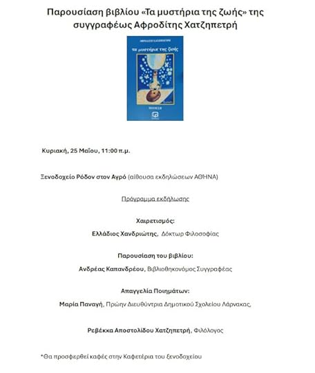 Παρουσίαση του βιβλίου της Αφροδίτης Χατζηπετρή «Τα μυστήρια της ζωής»