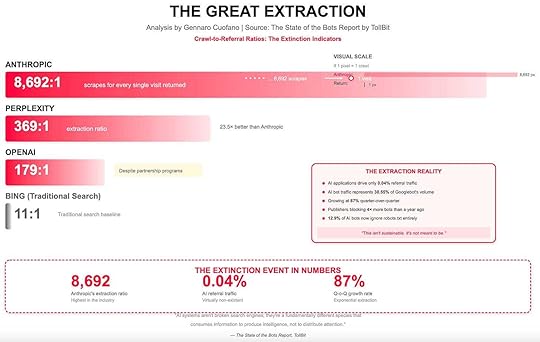 The crawl-to-referral ratios tell a story of pure extraction that would make even the most aggressive strip-mining operation blush.