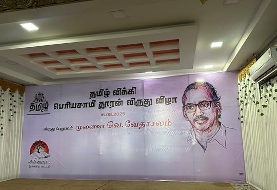 இன்று தமிழ்விக்கி தூரன் விருது விழா நிறைவு. 15 காலை நான் ஈரோட்டில் வந்து இறங்கியபோது தொடங்கிய விழா மனநிலை இன்று விருதுவிழா முடிந்து ஒவ்வொருவராக விடைபெற்றுச்சென்றபின் சற்றுநேரம் பேசிக்கொண்டிருந்தபின் படுக்கையறைக்கு வந்தபோது களைப்புடன் நிறைவுக்கு வந்தது. உண்மையில் விருதளிப்பு நிகழ்வின்போதே களைத்திருந்தேன். இந்த முறை சென்ற ஆண்டைவிட வருகையாளர் மிகுதி. ஆகவே ஊக்கமும், பேச்சும் மிகுதி. தீவிரம் களைப்பையும் கொண்டுவந்துவிடுகிறது.