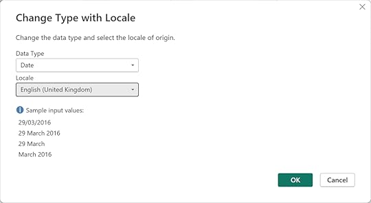 Now we’ll set this column to Date, making sure to use the UK locale so the format is interpreted correctly.