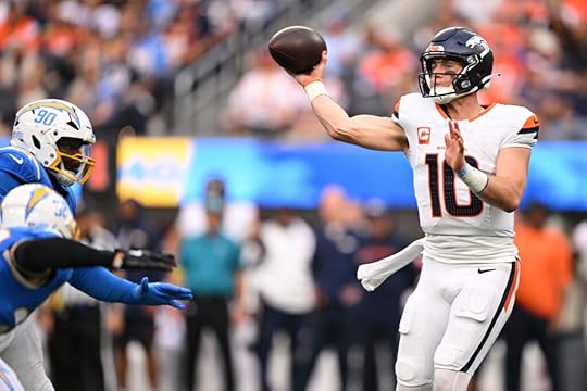 Denver Broncos quarterback Bo Nix (10) throws a pass during the second half of an NFL football game against the Los Angeles Chargers, Sunday, Sept. 21, 2025, in Inglewood, Calif. (AP Photo/Carrie Giordano)Broncos take “pressure off” Greenlaw