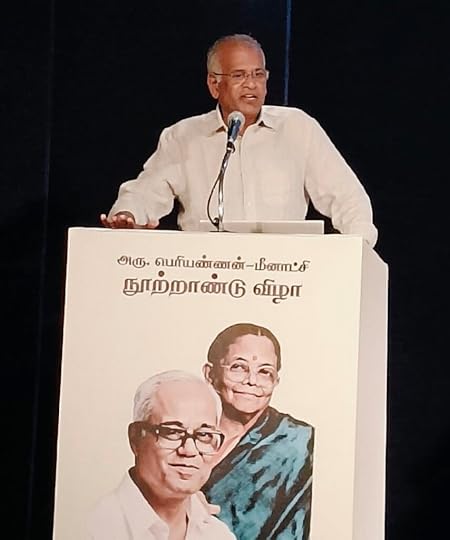 முதல்முறையாக நான் இளமையிலேயே படித்திருந்த லேனா தமிழ்வாணன் அவர்களை பார்த்தேன். அதே மாறாத இளமையுடன் இருந்தார் என்று தோன்றியது. அமைச்சர் ரகுபதி பேசினார். சென்னை கிறிஸ்தவ கல்லூரி மாணவர்கள் பொன்னி இதழ்களை எண்ணிம வடிவத்தில் சேமிப்பதற்கான பணிகளை செய்து இருக்கிறார்கள் . அரு.பெரியண்ணனின் பேரன் கார்த்திக் சிதம்பரம் தொகுத்த இரண்டு நூல்கள் அங்கு வெளியிடப்பட்டன. ஒன்றுபொன்னி இதழ்களின் தொகுப்பு. இன்னொன்று அரு.பெரியண்ணன் அவர்களின் வாழ்க்கை வரலாறு. நூல்களை அமைச்சர் திரு ரகுபதி வெளியிட அதை பாராளுமன்ற உறுப்பினர் திருச்சி சிவா  பெற்றுக்கொண்டார்.