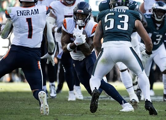 Denver Broncos wide receiver Courtland Sutton (14) runs down field against the Philadelphia Eagles during the second half Sunday, Oct. 5, 2025, at Lincoln Financial Field in Philadelphia, Pa. (The Denver Gazette, Christian Murdock)Cheers…