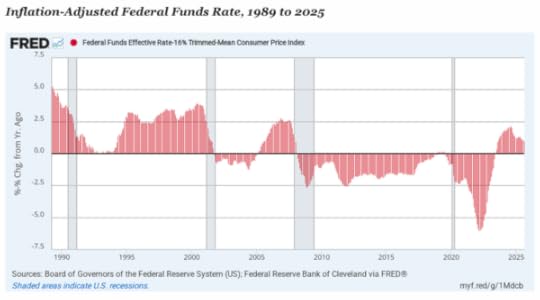For instance, here is the inflation-adjusted Fed funds rate over the last four decades: