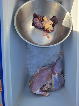 I like to rest my meat by keeping it in a cooler filled with ice. When I'm done butchering, I sprinkle a little sea salt (optional) over the meat, cover the birds with more ice, and let the cooler sit inside. Check the ice level daily, adding more ice, as needed.