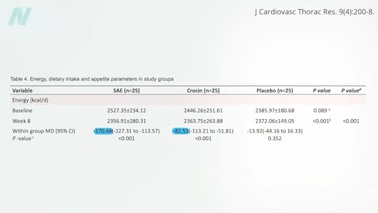 That also led to weight loss, but it didn’t do as well as the full saffron extract and only beat the placebo by two pounds and half an inch off the waist. The mechanism appeared to be appetite suppression, as the crocin group ended up averaging about 80 fewer calories a day, whereas the full saffron group consumed an average of 170 fewer daily calories, as you can see below and at 1:21 in my video.