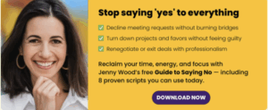 My Friend, Jenny Wood, New York Times-bestselling author of Wild Courage and former Google exec, created the Guide to Saying No (Without Feeling Like a Jerk) — 8 plug-and-play scripts to decline projects, meetings, and favors with clarity and confidence. Get it here.