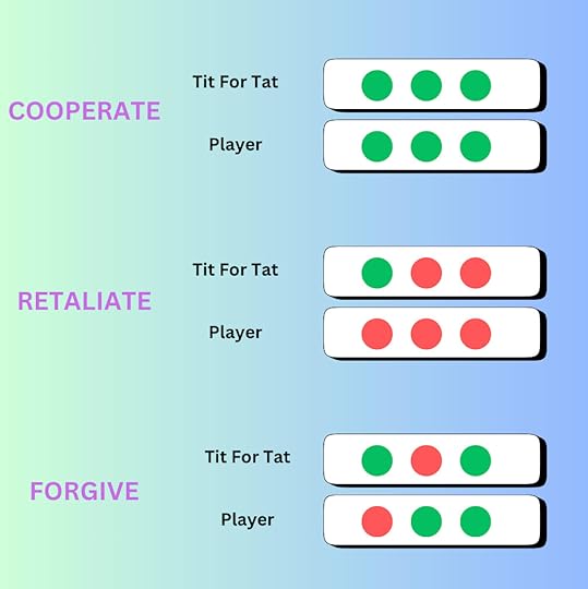 В 1980-х экономист Роберт Аксельрод решил провести турнир по дилемме заключенного среди компьютерных программ. Дилемма заключённого — классическая задача теории игр. Двум напарникам предлагают смягчить наказание, если они донесут друг на друга. Если оба молчат — по полгода каждому. Если один предаст, а другой промолчит — первый свободен, второй получает 10 лет. Если оба предадут — то по 2 года каждому. Другая версия игры предполагает разное вознаграждение участникам в зависимости от того, решили они кооперироваться или нет. Каждый решает делиться некой суммой баллов или нет. Оба поделились - хорошо. Один поделился, другой нет, обманщик получает большее вознаграждения. Но если оба не делятся, то оба в большом пролете. Одного раунда такой игры мало, чтобы понять оптимальную стратегию. Поэтому в исследовании альтруизма устроили турнир: множество программ играют друг с другом по 200 раз.