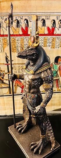 VS: I have an entire series on interconnected ronantasy novels set in ancient Egypt, in which the gods walk the land beside the Nile and are involved in daily life the way the Egyptians believed them to be. Here we have Sobek talking to one of his priestesses, Tyema, as he is about to send her on a dangerous trip to Thebes. (It should be noted that except for the first book, PRIESTESS OF THE NILE the romances in the novels are between humans, not humans and gods.)