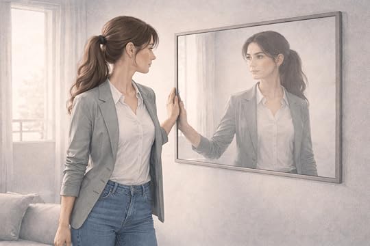 ومع ذلك، شعرت بغربة خفيفة تسلّلت إليها فجأة. اقتربت من الزجاج البارد، حدّقت في عينيها أطول من المعتاد، وسألت نفسها بهدوء لم تعهده: هل هذه أنا حقًا؟