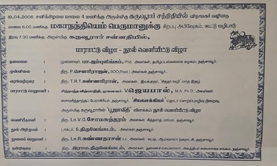 இதற்கு முன்பாக சுமார் 10 ஆண்டுகளுக்கு முன்பாகத் தஞ்சாவூர், பெருவுடையார் கோயிலில் 18.9.1998இல் சிவப்பிரகாசம் குறித்து உரையாற்றியுள்ளேன்.