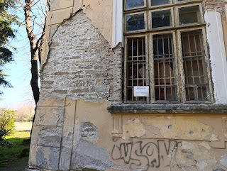 Природо-научния музей, който е зад нея изглеждаше зловещозаради напуканите си стени, падналите мазилки с предупредителни надписи, че еопасна за живота близостта на сградата.