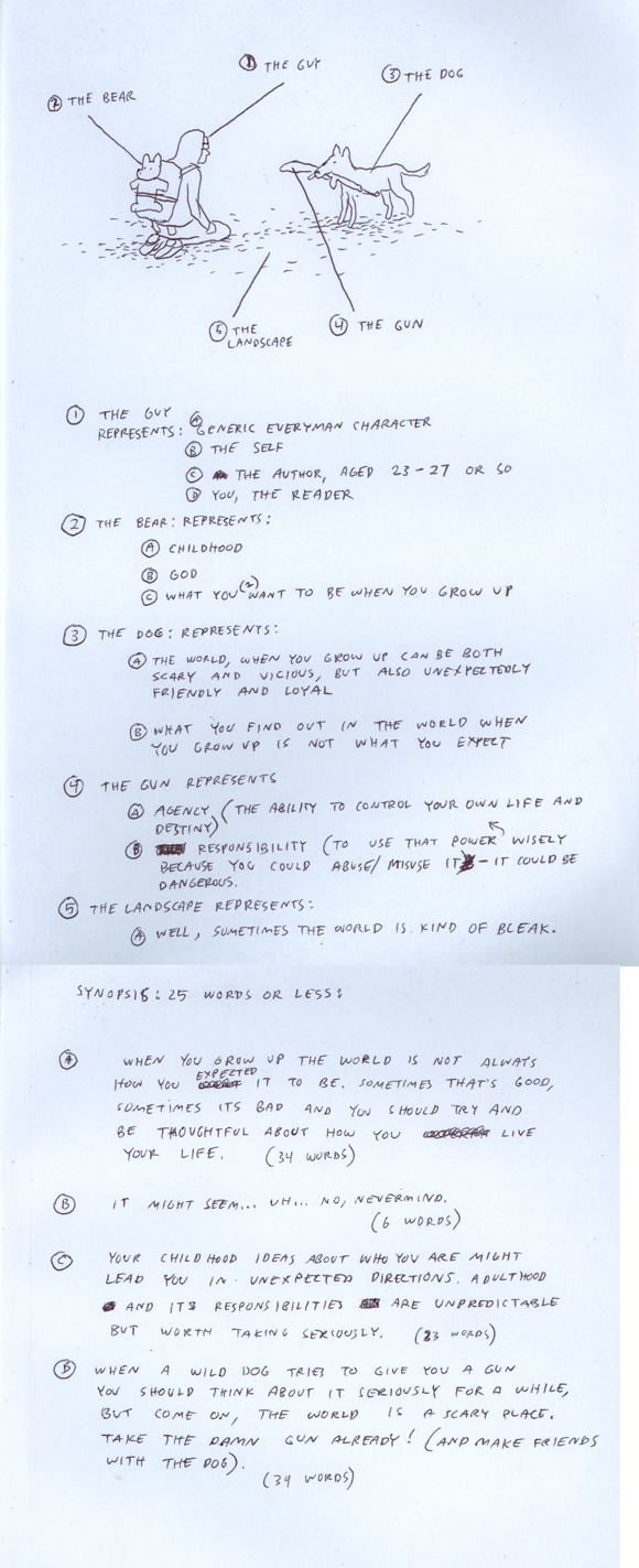 (The above diagramatic explanation is intended for application to the t-shirt image only. Extreme care and subtlety should be employed in extrapolating it to the book as a whole. Such application, while reasonable as far as it goes – more or less – would be woefully incomplete.)